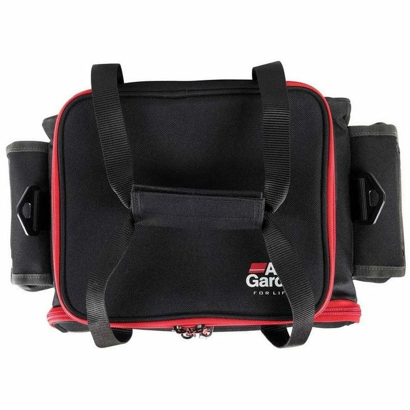 The Large Lure Bag is a large sized tackle bag which contains 5 empty tackle boxes (medium) and 2 empty tackle boxes (small). It has an adjustable shoulder strap and 2 carrying straps.