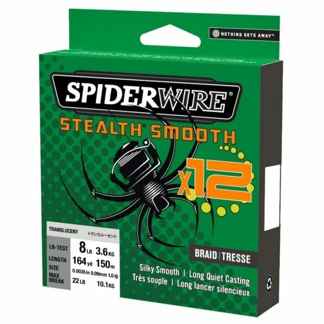 SpiderWire® Stealth® Smooth x8 braid offers a smooth, soft feel without sacrificing strength, sensitivity, or diameter. Stealth Smooth x8 is tightly woven with 8 carriers of PE fiber to create a tight, round braid that is Smooth for quiet casts.