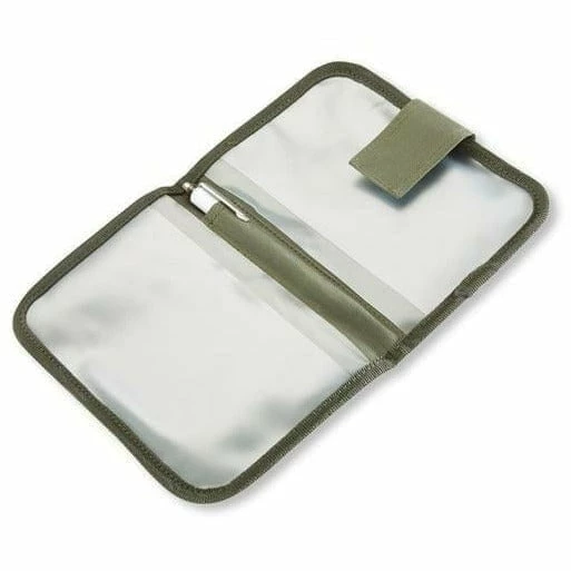 High-end fishing license case with 4 transparent inside compartments and a pen holder for a secure storage of documents, day permits, fishing license etc.