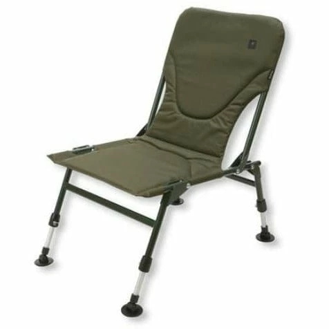 Affordable carp chair with padded backpart. The broad plate bases offer optimal stability even at steep and muddy grounds.