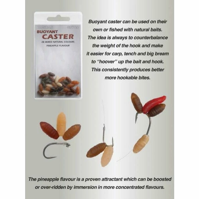 Very lifelike buoyant rubber casters from Drennan. 28 mixed natural colour with a pineapple flavour added for good measure. The pineapple flavour is a proven attractant which can be boosted or over-ridden by immersion in more concentrated flavours.