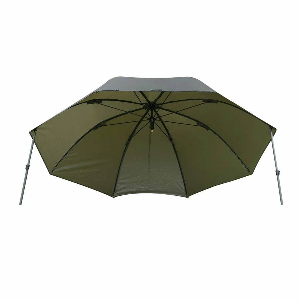 It features an extra strong adjustable centre pole with screw point, fibreglass ribs with a shallow central boss to increase head room and includes a three-position angle tilt mechanism.