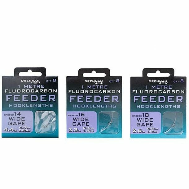 Wide Gape 1 metre fluorocarbon feeder hook lengths are perfect for baits such as worms, sweetcorn, casters and maggots.
