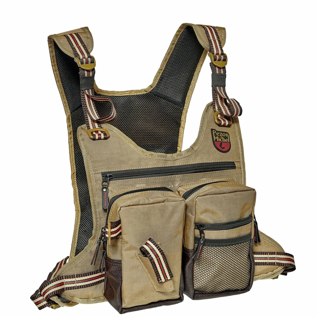 A lot of thought has gone into the design of this fishing vest. Perfect for both lure and natural bait anglers. The shape is designed for maximum comfort and fit. Padded shoulder and stomach straps hold the bib snug so you can move freely through dense vegetation. Fitted with plenty of different sized pockets and a clip on the back to snap on a trout landing net. Perfect for all roving anglers.