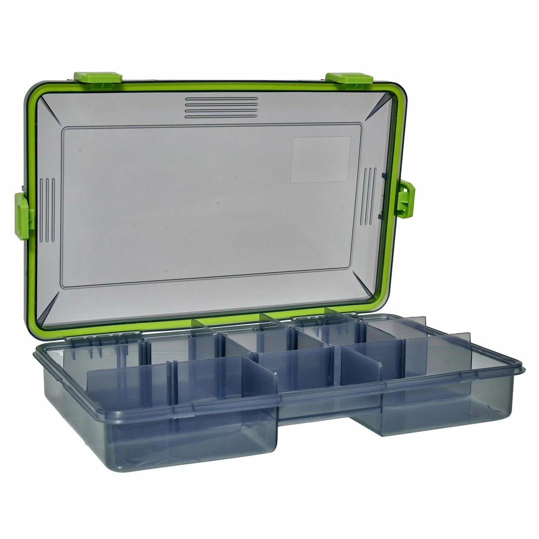 Lure boxes featuring modular compartments and a waterproof seal for optimal protection against the rain. This seal also helps the boxes to float which can prove handy if fishing from a float tube or canoe. The lid is held on by four clips to avoid accidental opening. Different options to suite a range of luggage sizes. Smoked grey colour limits the damaging effects of UV rays on your lures and plugs.