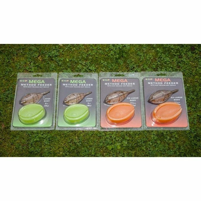 ESP’s Mega Method Feeders are the answer! These feeders can accommodate as much bait as the popular sizes of PVA bag but by using the accompanying mould, are much quicker and easier than filling and tying up a bag.