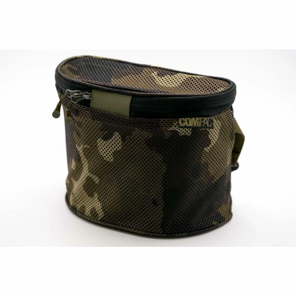Compac Caddy with insert Comfortably carrying up to 3kg of Bait, the multifunctional Compac Caddy features a fully adjustable waist strap that makes the task of applying Bait with a catapult or throwing stick easy. Made from a durable camo mesh, the Caddy can also be used as an air dry bag to keep boilies fresher for longer. In addition, the removable EVA insert makes it perfect for storing particles, or for using as a water bowl when photographing fish or balancing rigs.