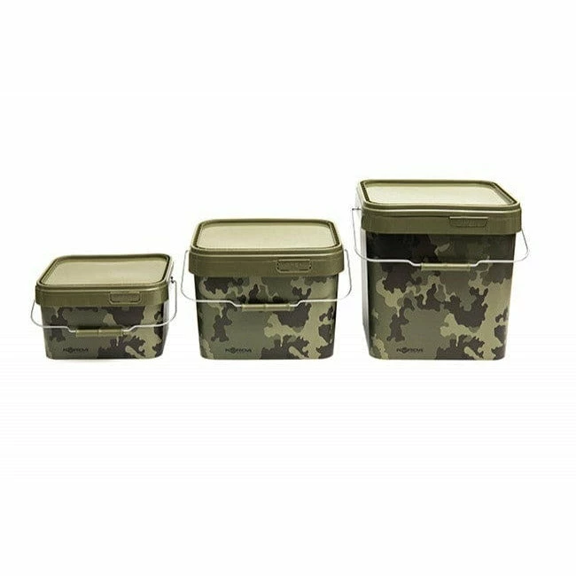 A trio of square-shaped buckets all sporting Korda camo and branding! Available in small, medium and large sizes and coming complete with a re-sealable lid. These are ideal for transporting bait and tackle, with the lid providing protection from the elements and stopping any bait spillages, etc.