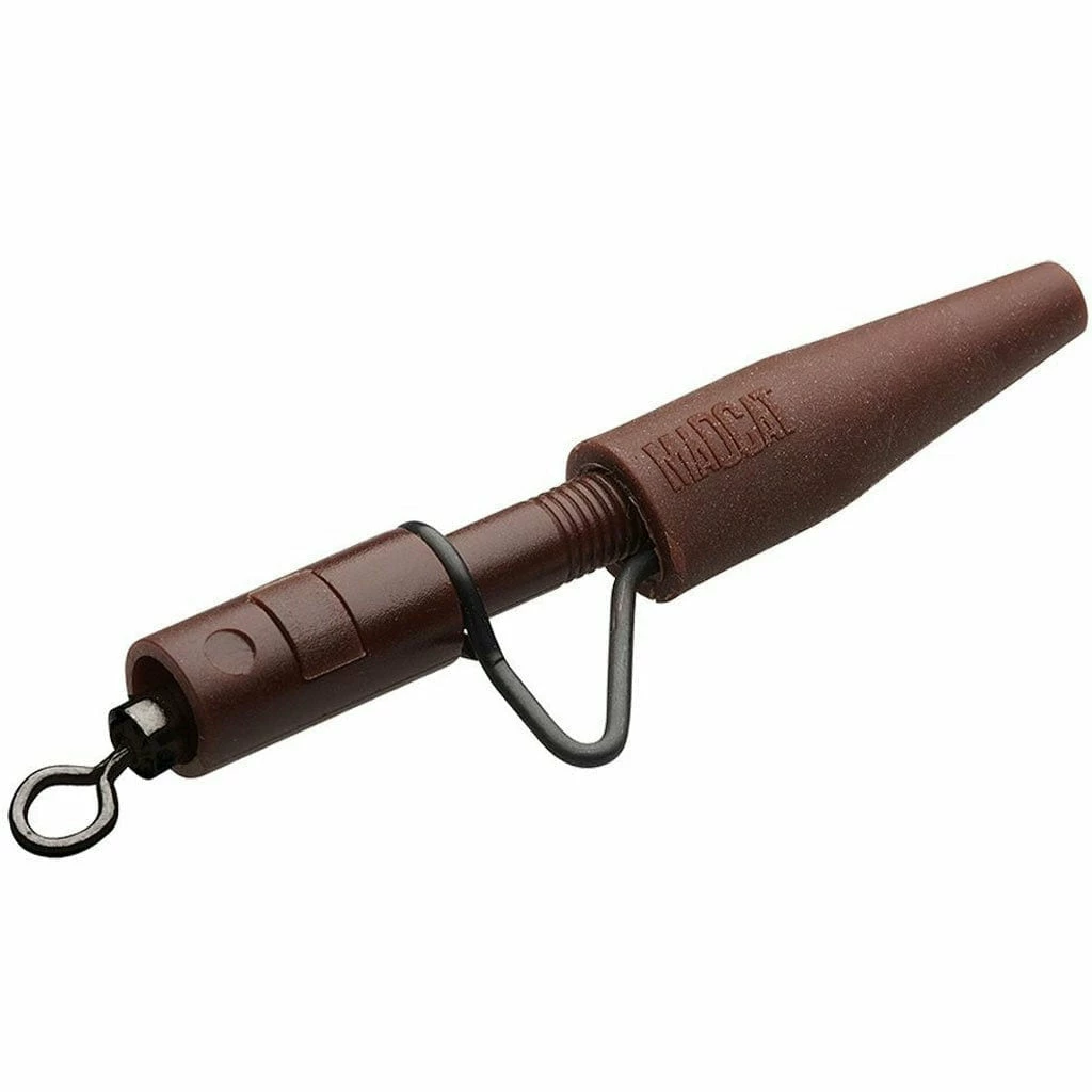 This king-sized safety lead clip allows you to easily and safely cast heavy weights. It features a pin to lock the rolling #2 swivel (100kg) and the shape of the arm enables a smooth release of a lead at the critical moment. Designed in a discreet brown colour.