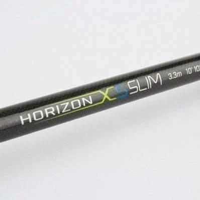 Horizon XS Slim Feeder 3.3m• Ultra-high modulus carbon blank• Two-piece rod designed to break down equally• Premium guides designed to enhance performance• Super slim fast tapered, quick action rod blank• Soft action designed for silver fish• Supplied with two tips (0.5oz, 1.0oz)• Unique detailed weave print applied to sections• High grade cork and EVA composite handle
