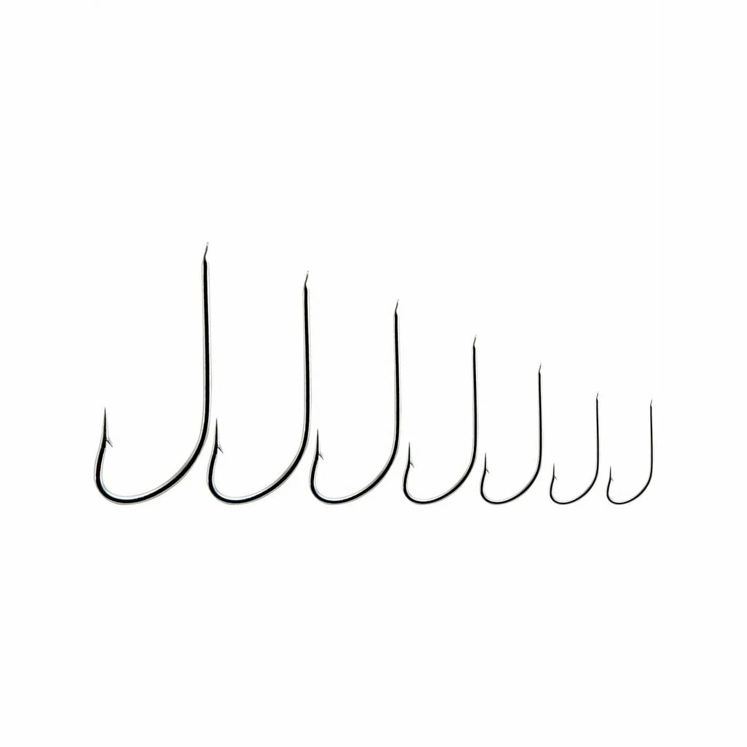 Straight nickel-plated hooks with long shank, medium tip and tight bend. They are fine-gauged and therefore very lightweight, making them ideal for attaching delicate bait that have to be completely hooked up.
