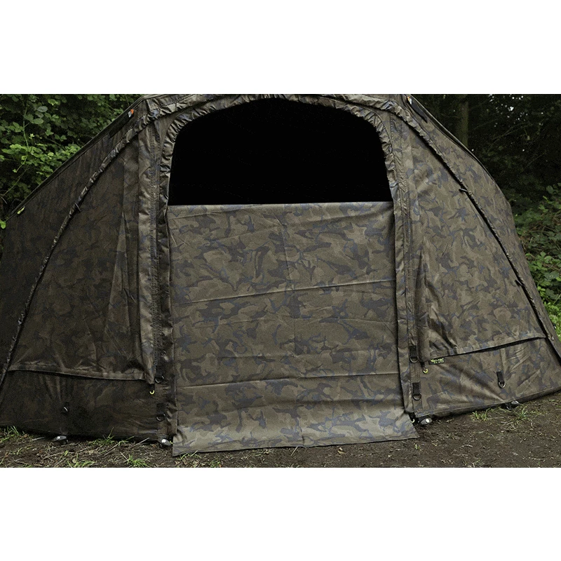 - Supplied with zip-on, fully removable Ultra Brolly Camo Full Front that features three door options: clear PVC, solid Fox Camo and Fox Camo mozzy mesh