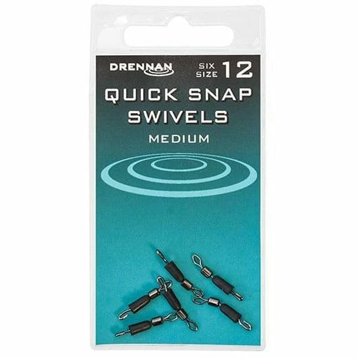 The Quick Snap Swivels come in four sizes, 12, 14, 16, and 18 and act as an anti-twist device. The larger sizes are ideal for bomb and feeder work whilst the smaller sizes are perfect for pole rigs and float setups.