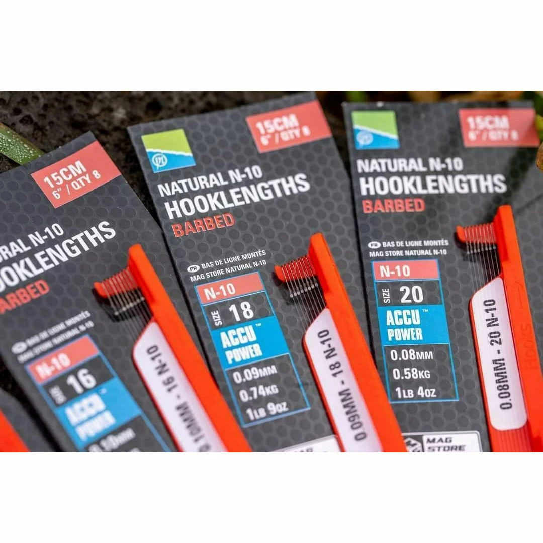 These Preston rigs feature the N-10 hook which is ideal for smaller fish like roach and skimmers and also suited to small baits like maggots, pinkie and casters.