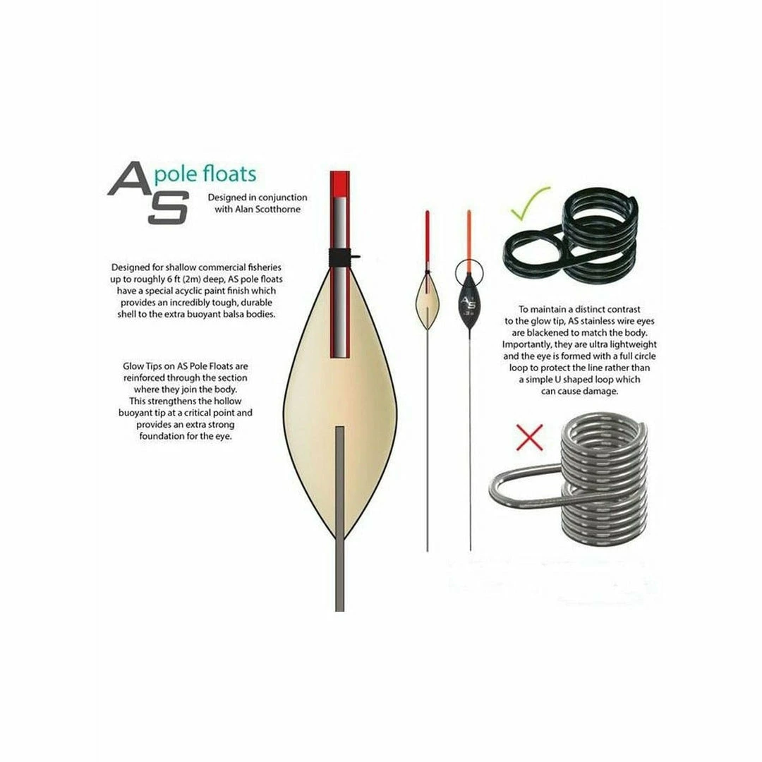 The floats are constructed in our own factories using high-grade balsa for maximum buoyancy and coated with our unique, extra-strong, acrylic paint finish for maximum durability. As with the rest of the series, the AS7 is fitted with one of our unique black, stainless steel, spring eyes. It also boasts a sturdy stainless steel stem for exceptional stability.