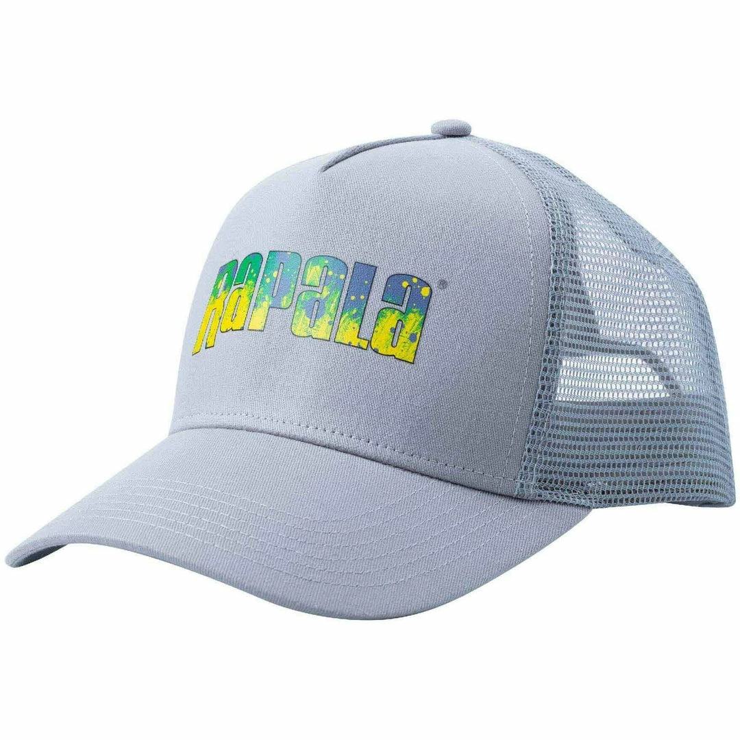 Classic trucker cap with Rapala Splash logo in Dorado pattern. Mesh back keeps you cool on hot days. Pre-curved visor keeps its shape. Snapback closure. One size fits all. Color: gray.