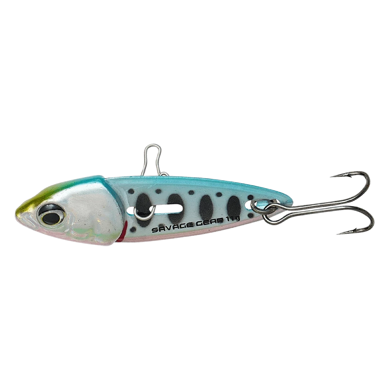 A Duo action blade lure, with a unique action style. With the snap attached behind the gill the lure will vibrate and flash on retrieve and glide away from the retrieve line on spin stop. When the snap is attached in the head, the lure will run high like a spoon and glide away from the retrieve line on spin stop.