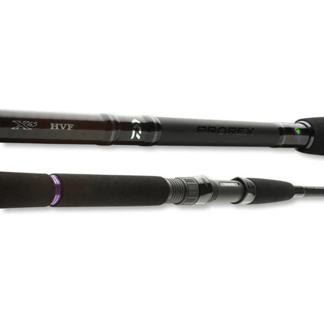 Akcija Prorex X štapova je napravljena po posebnim zahtjevima modernog varaličarskod ribolova sa mekanim i trvrdim mamcima. Podignuta gustoća materijala u HVF blanku brine se za malu težinu, ektremnu zalihu snage i žilavosti, kao izuzetnu detekciju ugriza. X45 karbonska konstrukcija rezultira blankom koji je vrlo otporan na deformaciju – štapovi gotovo da nemaju uvijanje što dozvoljava dalje i preciznije bacanje. Patentirani V-Joint spoj sa trnom podržava pravilnu krivolju savijanja i štiti blank od oštećenja. Križno namatanje na površini blanka daje dodatnu čvrstoću i poseban izgled. Nove Fuji Fazlite vodilicie dubokog plavog sjaja savršeno upotpunjuju ovoj kategoriji cijenu izuzetnom opremom. Širok asortiman Prorex X serije štapova nudi specijalizirane modele za gotovo sve vrste modernog spin ribolova.