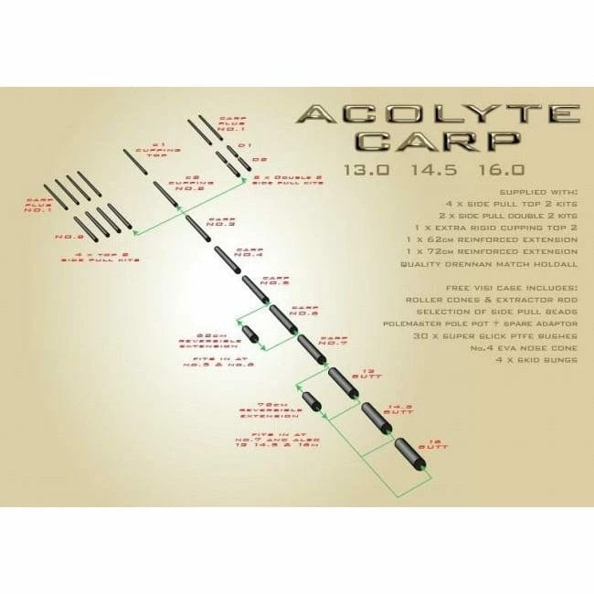 Plus: 4x Skid Bungs, Polemaster pole pot, 30x PTFE bushes, EVA nose cones, spare cupping kit adaptor, Extractor Rod, 6x Roller Cones, Side Pull Beads, Visi Case (Six kits and a cupping kit in total)