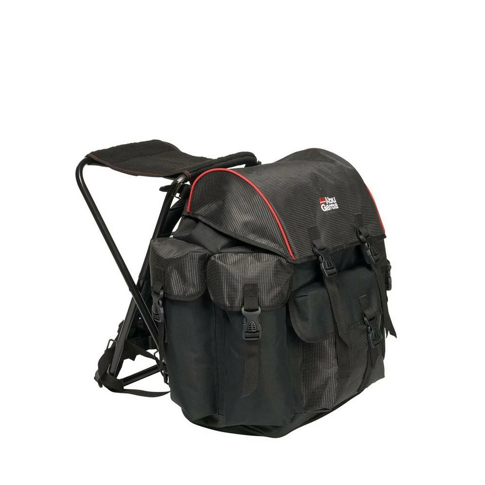 High quality Rucksack-Chair of heavy denier, water-repellent nylon. Padded straps for carrying comfort. Extra sturdy frame with thick material of 1.2mm. Numerous pockets to hold all your gear.