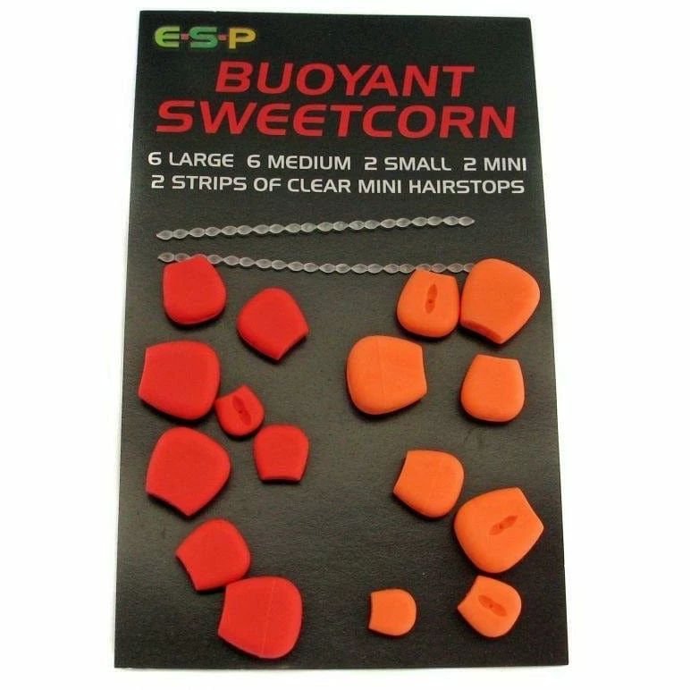 The Big Buoyant corn has 18 (yes18!) grains squeezed into the packet (6 giant, 6 extra large and 6 large) plus two strips of complementary small ESP hair stops. Like on the smaller sizes, selected grains feature a hair stop recess on the side or on the end to allow for lengthways or sideways presentation, whilst other grains have no recess.